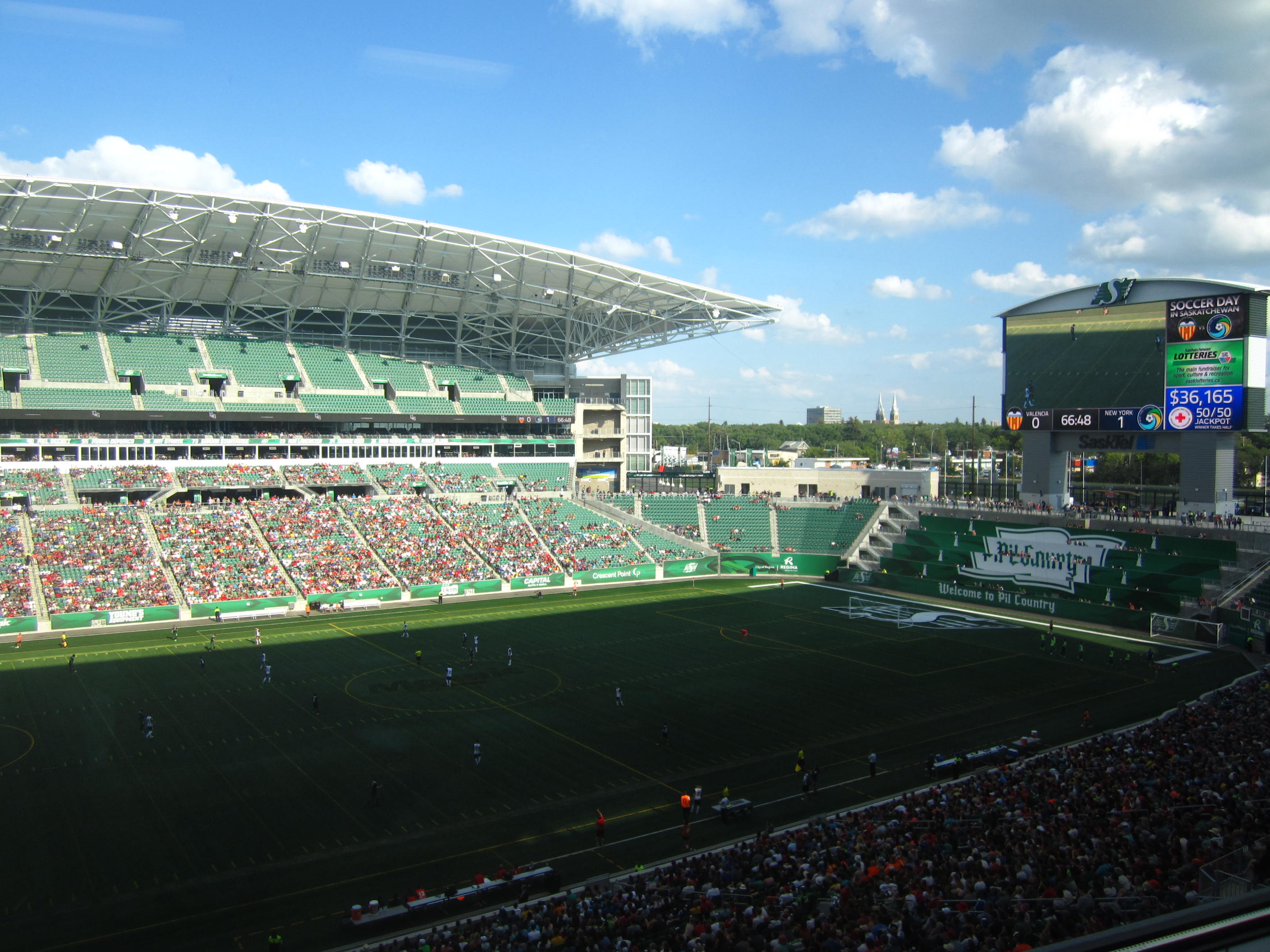 En un partido amistoso internacional por primera vez en la ciudad de Regina, los Cosmos de New York jugaron contra el Valencia CF y el marcador fue para NY 2-0.